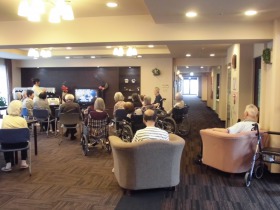 皆さん席に座り、マイクを持つ人、そのまま皆さんと一緒に歌う人、様々です。