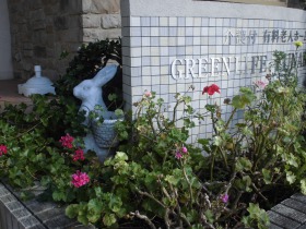 船橋の玄関先では、フクロウとカメが出迎えをしております。
