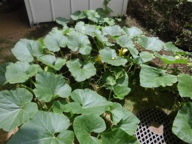 グリーンライフ船橋の中庭でコンテストに出品するカボチャを育てています。