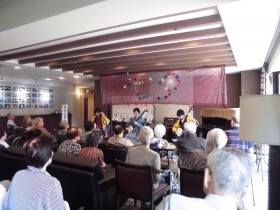 ご入居者の演奏するハーモニカで懐かしの歌謡曲を皆で歌いました。