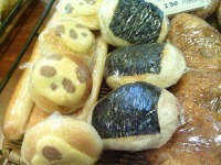 あんぱん、クリームパン、メロンパン、サンドイッチと定番のパンのほかにも、のりめんたい(きのこと明太子が入っています)、野沢菜おにぎり(野沢菜が入った三角のパンです)など、オリジナルのおいしいパンがたくさん並びます。