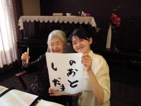 本日は皆さんと書初めをしました。皆さんとてもお上手でした。