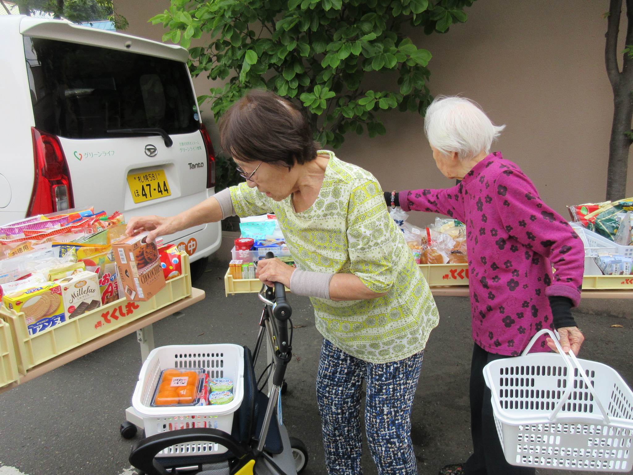 お買い物時間は入居者さんによって本当にバラバラで、5分で済ませてしまう方もいればゆっくりと長い時間吟味しカゴ2個いっぱいになるくらい買われる方も(笑)