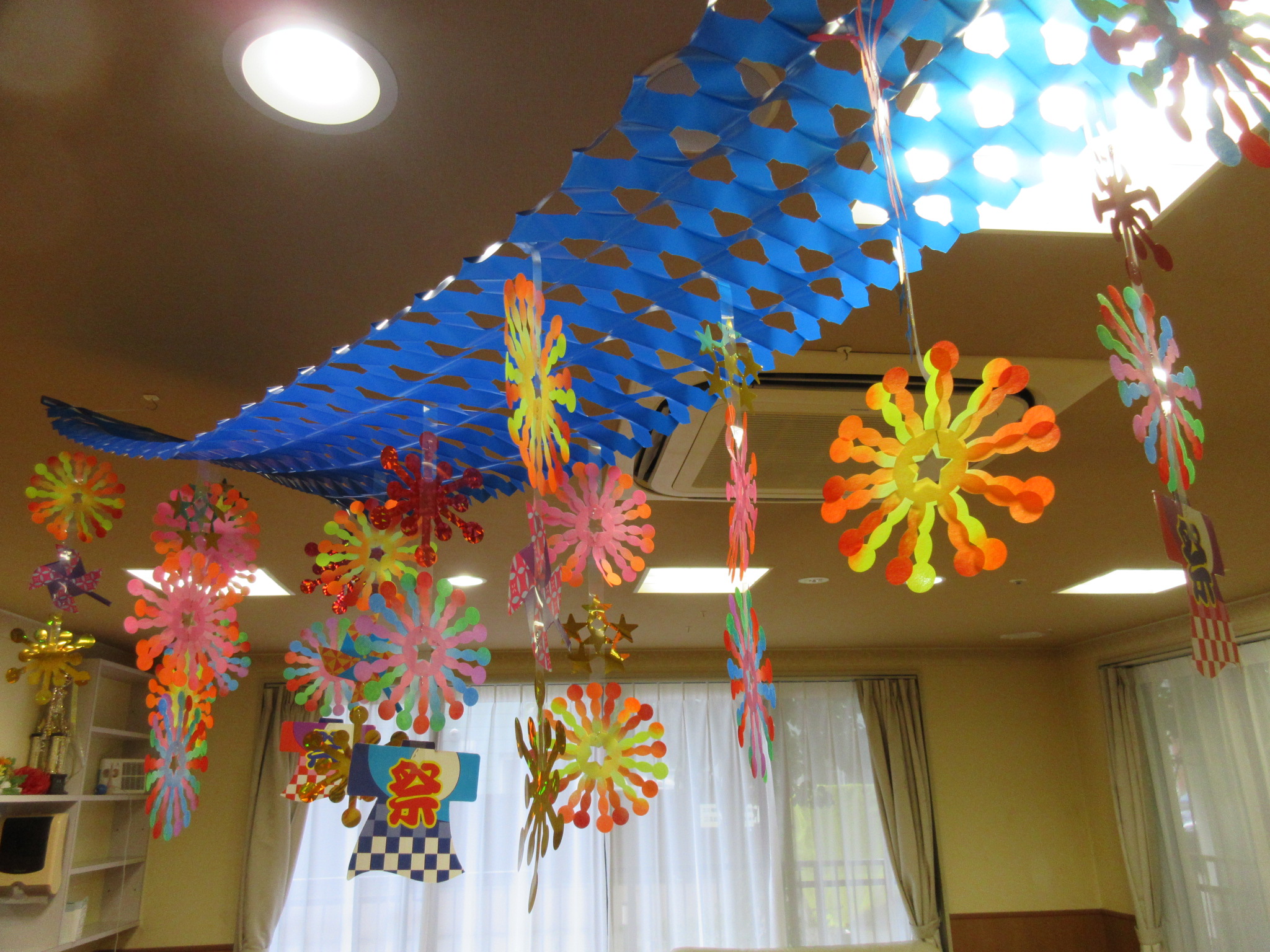 まだ6月なのに30度近い気温の日も多くすでに夏バテぎみですが、そんな気候に合わせ施設内も夏らしい装飾にしてみました