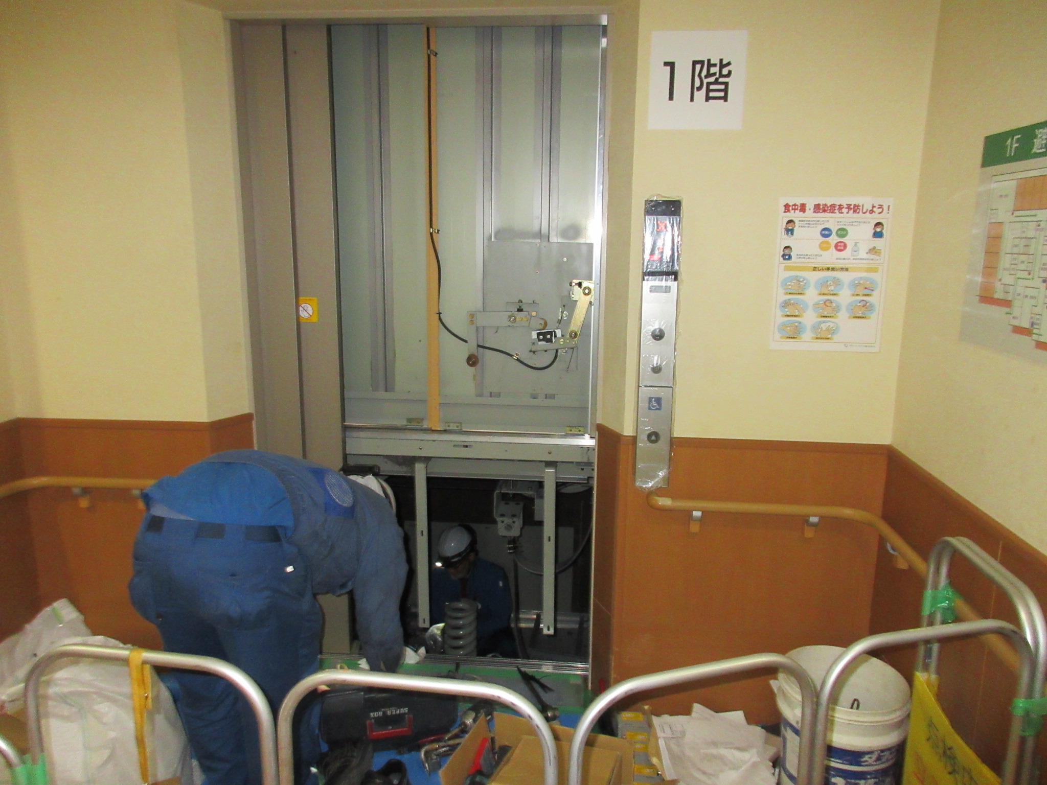 先日エレベーター工事のお知らせをいたしましたが、今日はその様子をお届けします