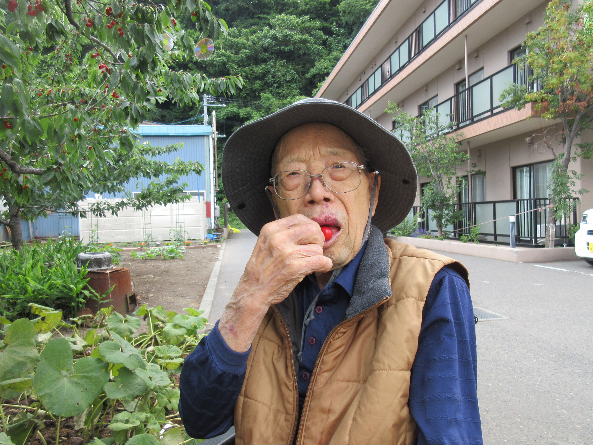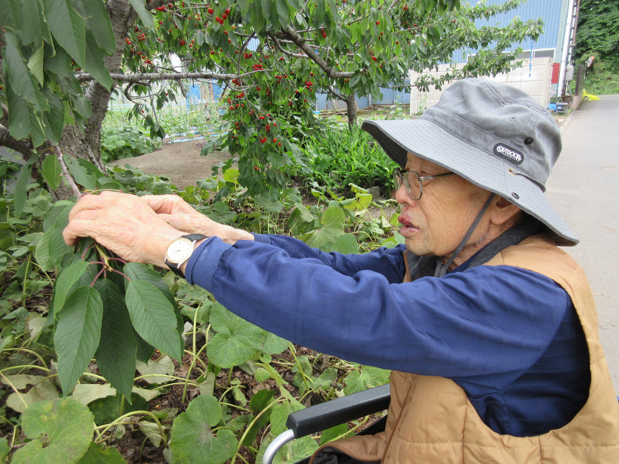 話は変わりますが、今日も入居者様とサクランボ食べました~