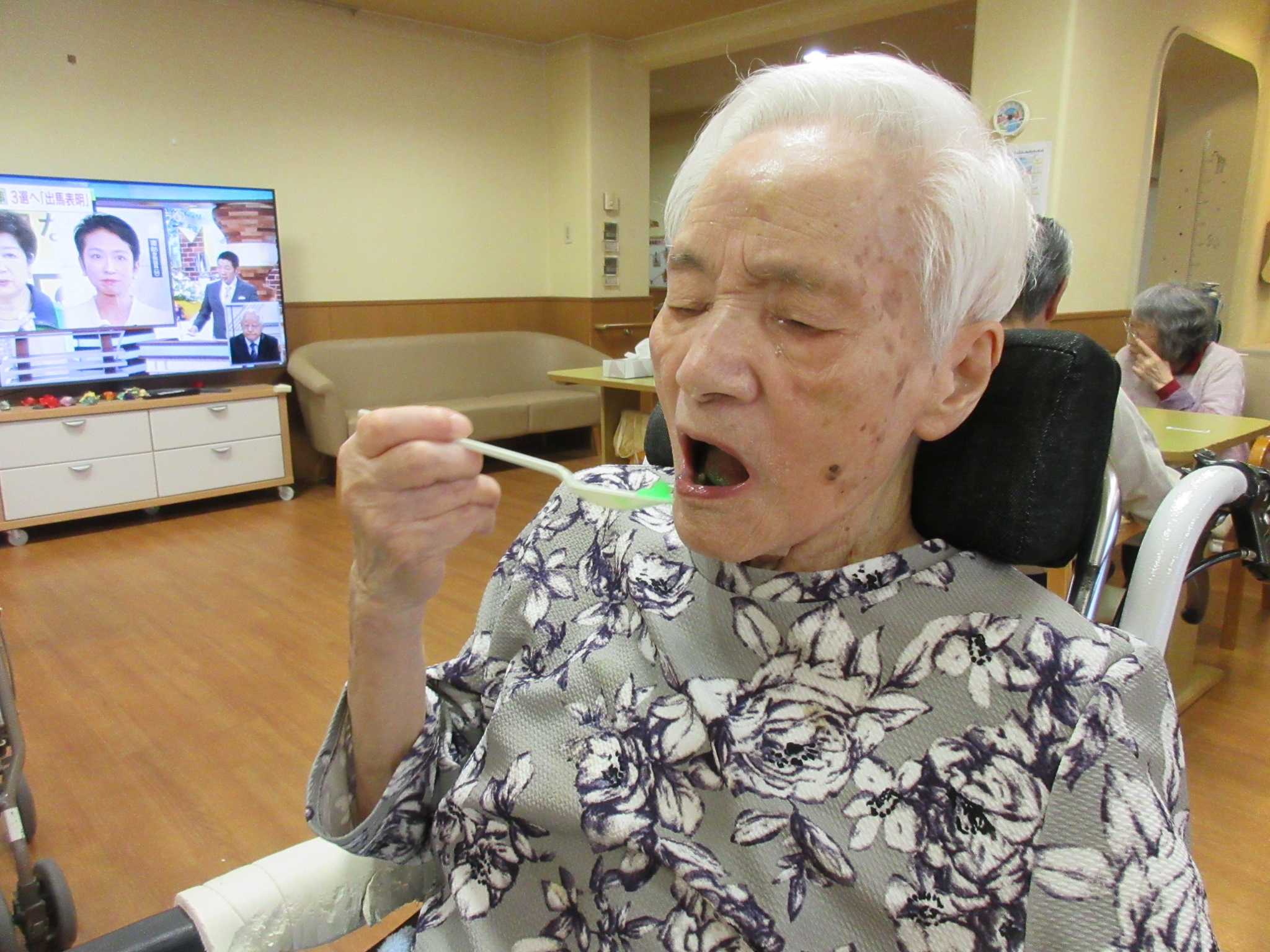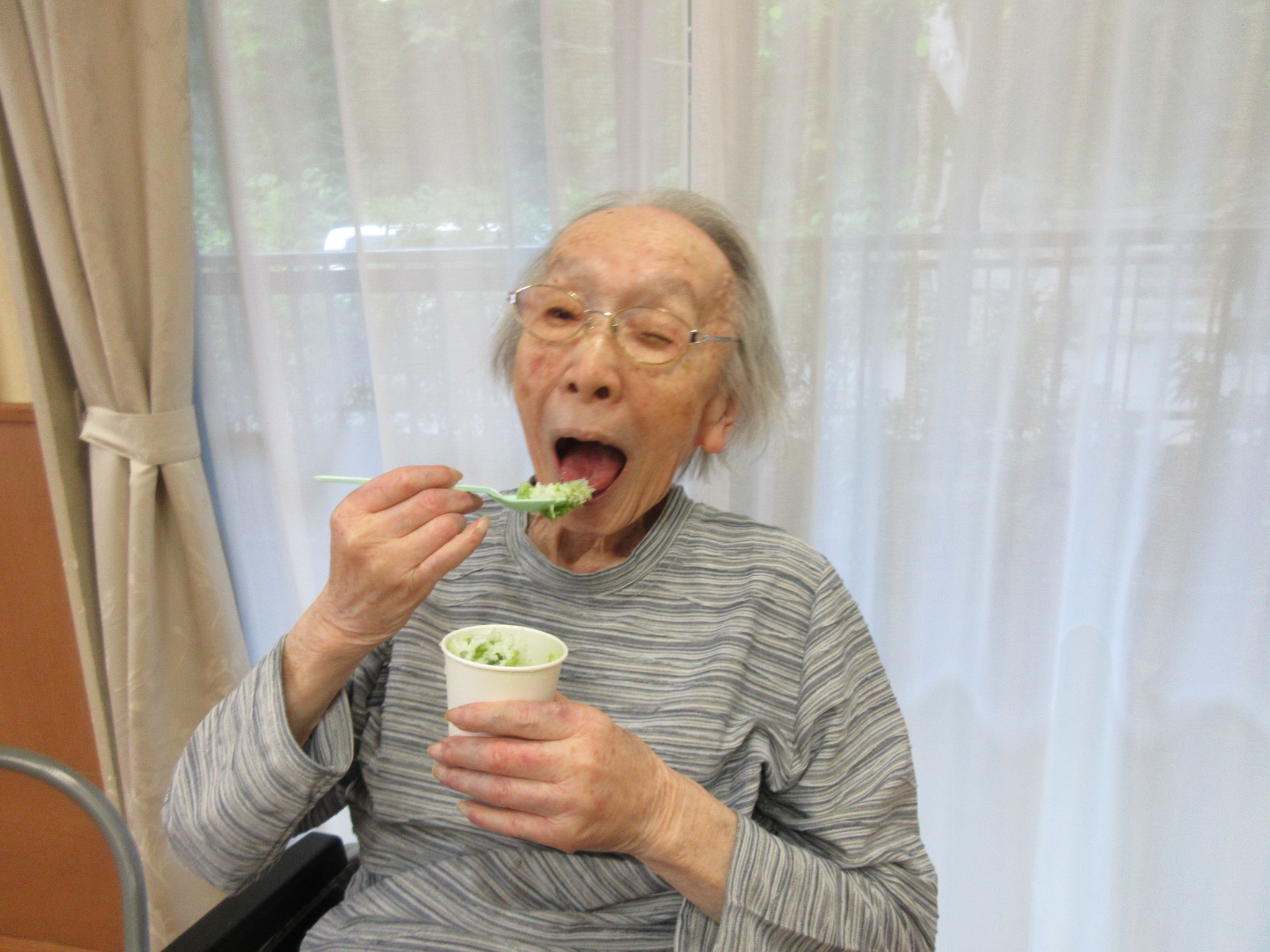 こんなに暑いときにピッタリなかき氷を午後から皆さんと一緒に食べました。