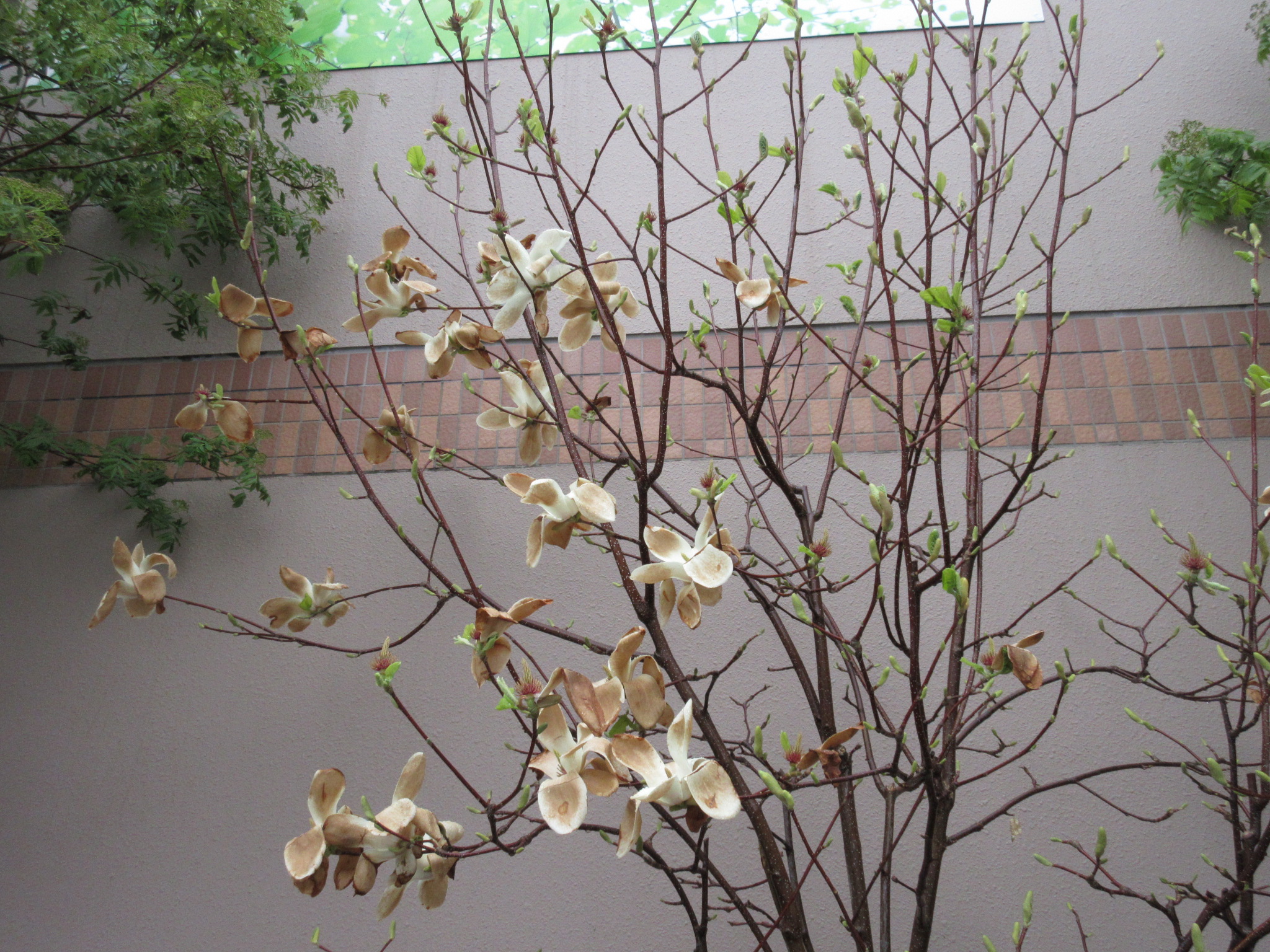 数日前までキレイに咲いていた玄関横のコブシが、あっという間に枯れてしまいました