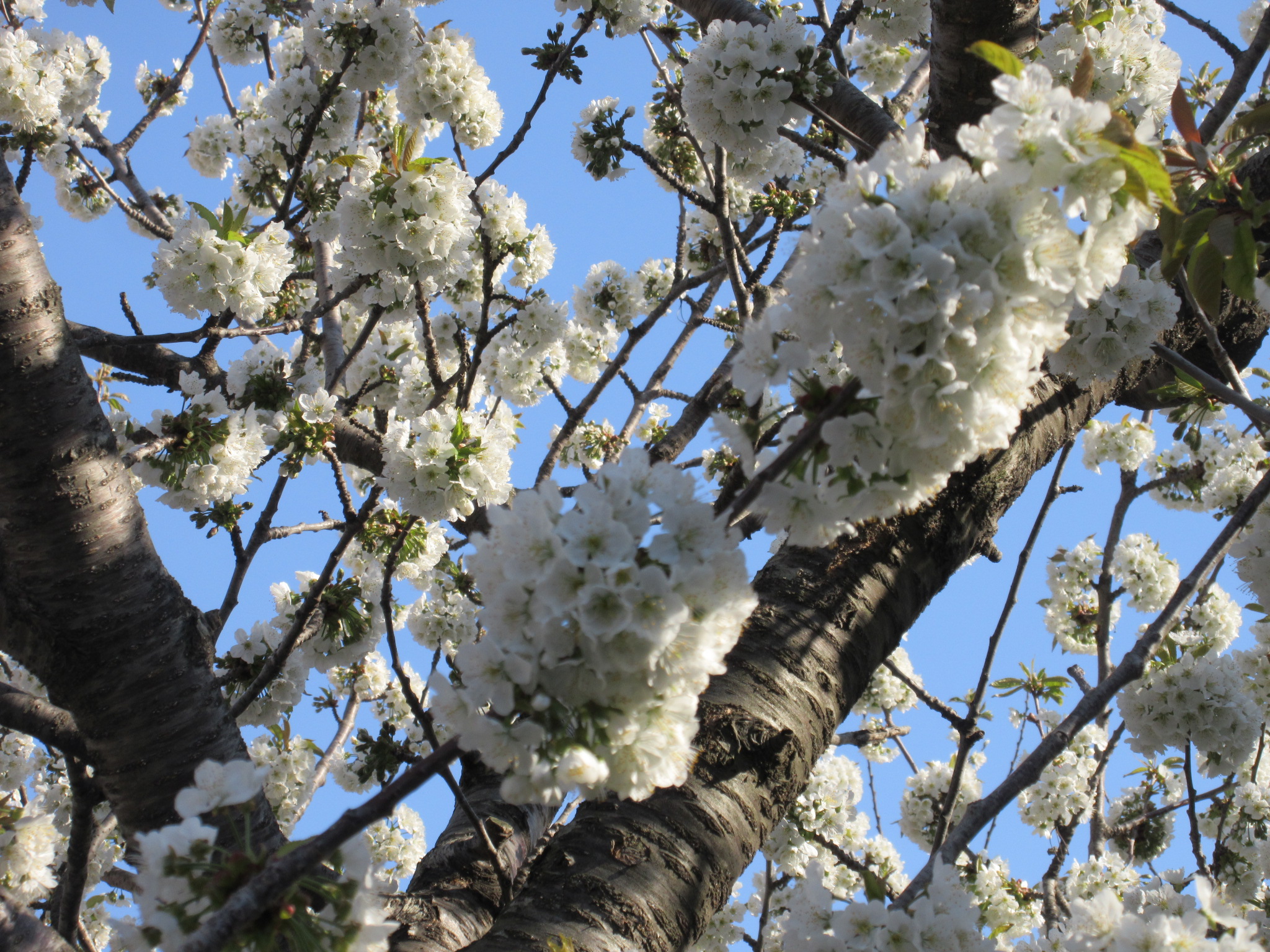 桜があまりにも早く散ってしまったので、今年はサクランボの木でお花見!
