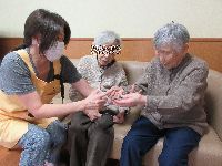 スタッフとあやとりをして楽しんでいるお二人を発見しました