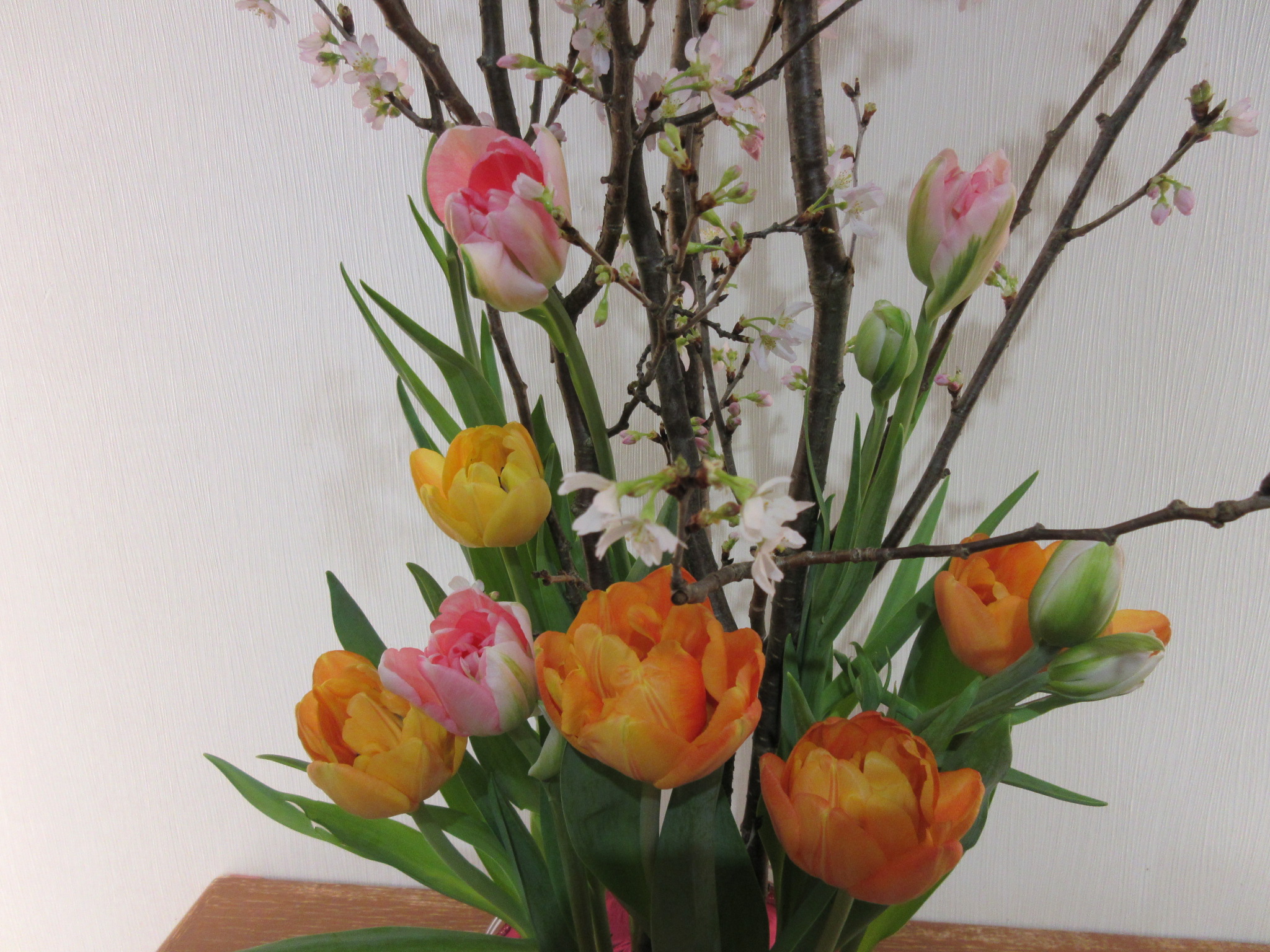 エントランスのお花にチューリップが入りました