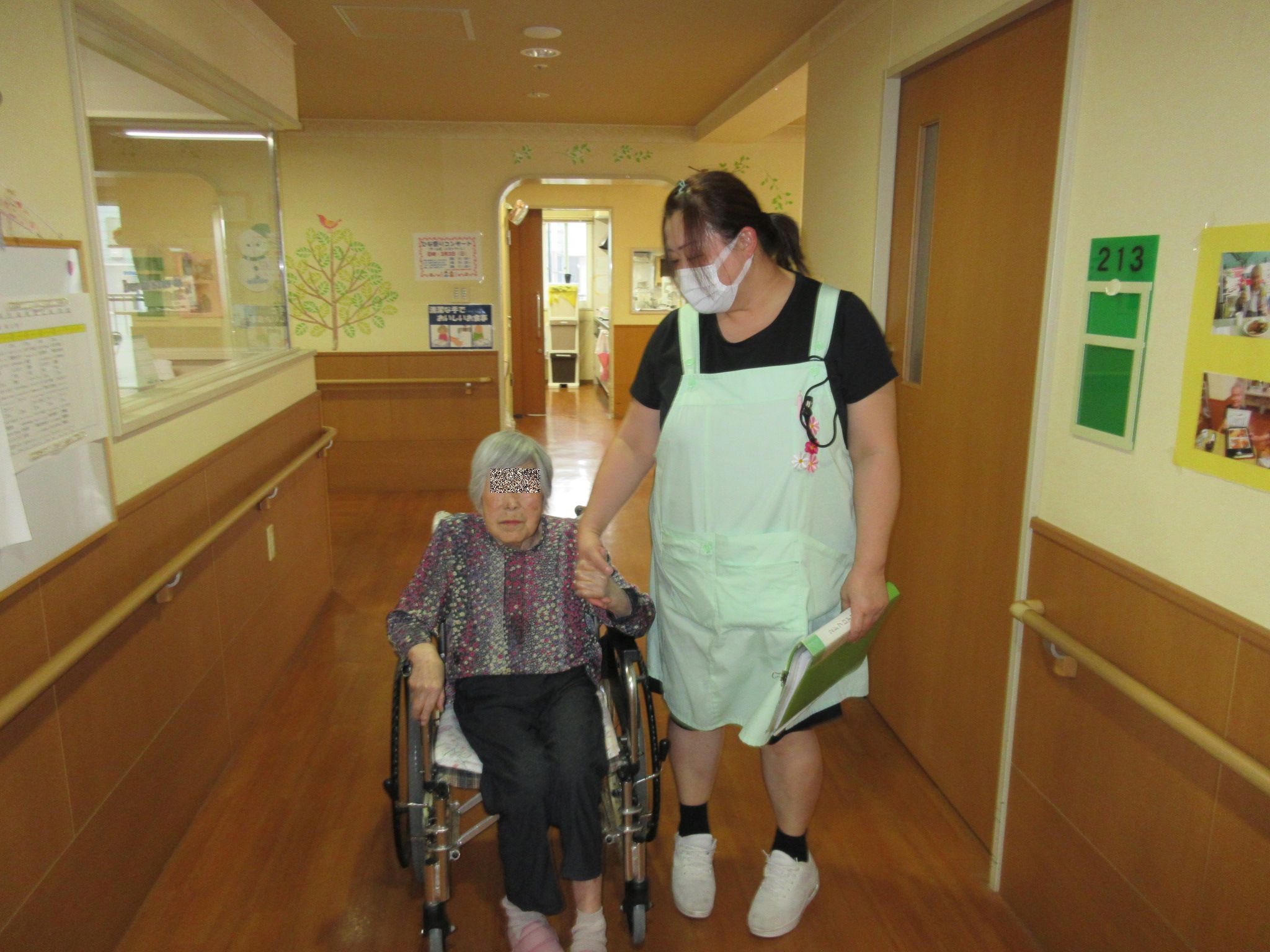 毎日1時間程入居者さんは訓練指導員と一緒に体操を行っていますが、今日は昼食後も体操をしている方がいらっしゃいました