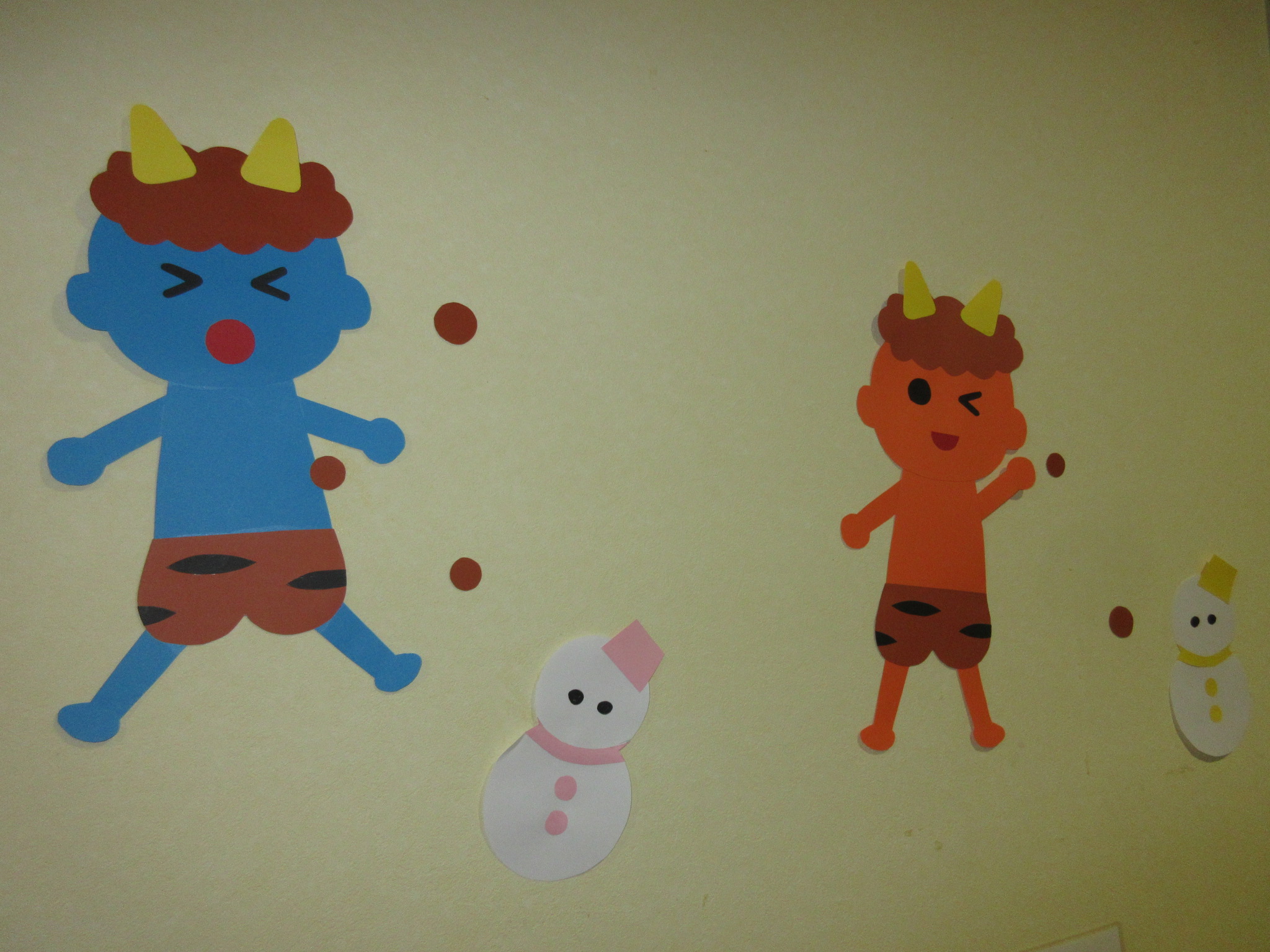 今年も鬼に扮した職員二人が豆まきの標的になる予定です