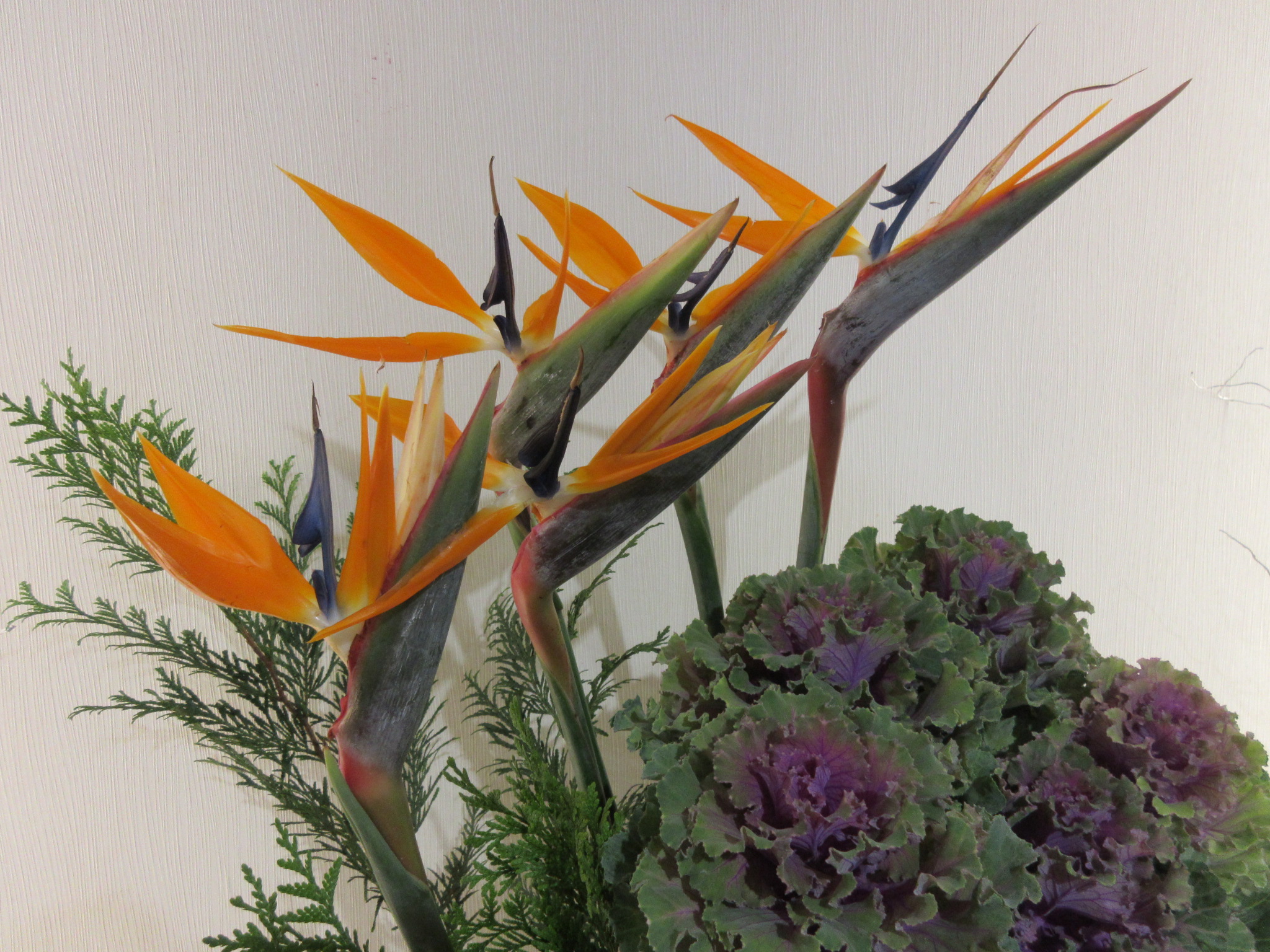 なんだか鋭い形の花は、ストレチアというものでは花びらは触ると固くて”がく”のようです