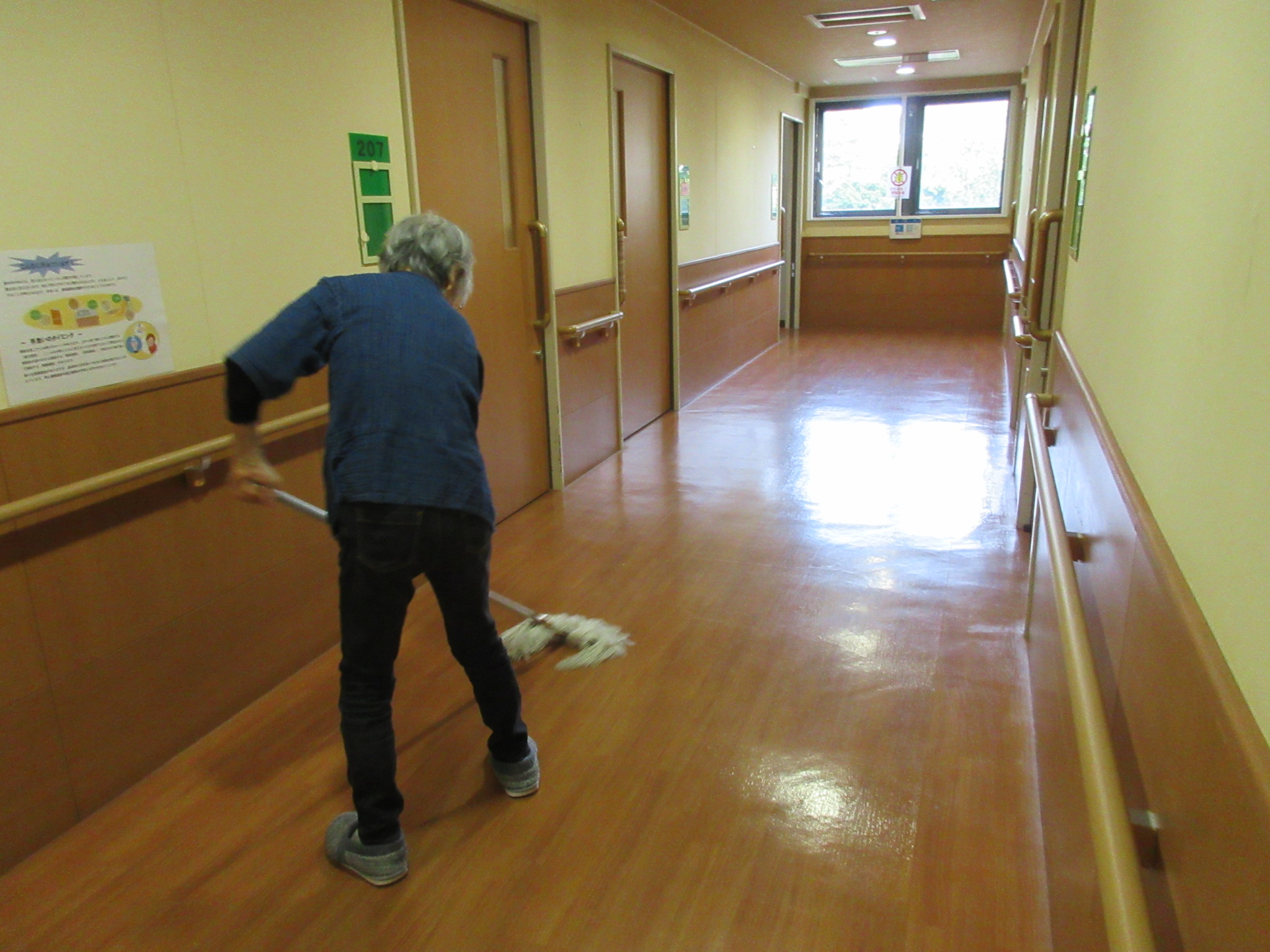 「じゃあ、手すりの消毒と床のモップかけをお願いしても良いですか?」