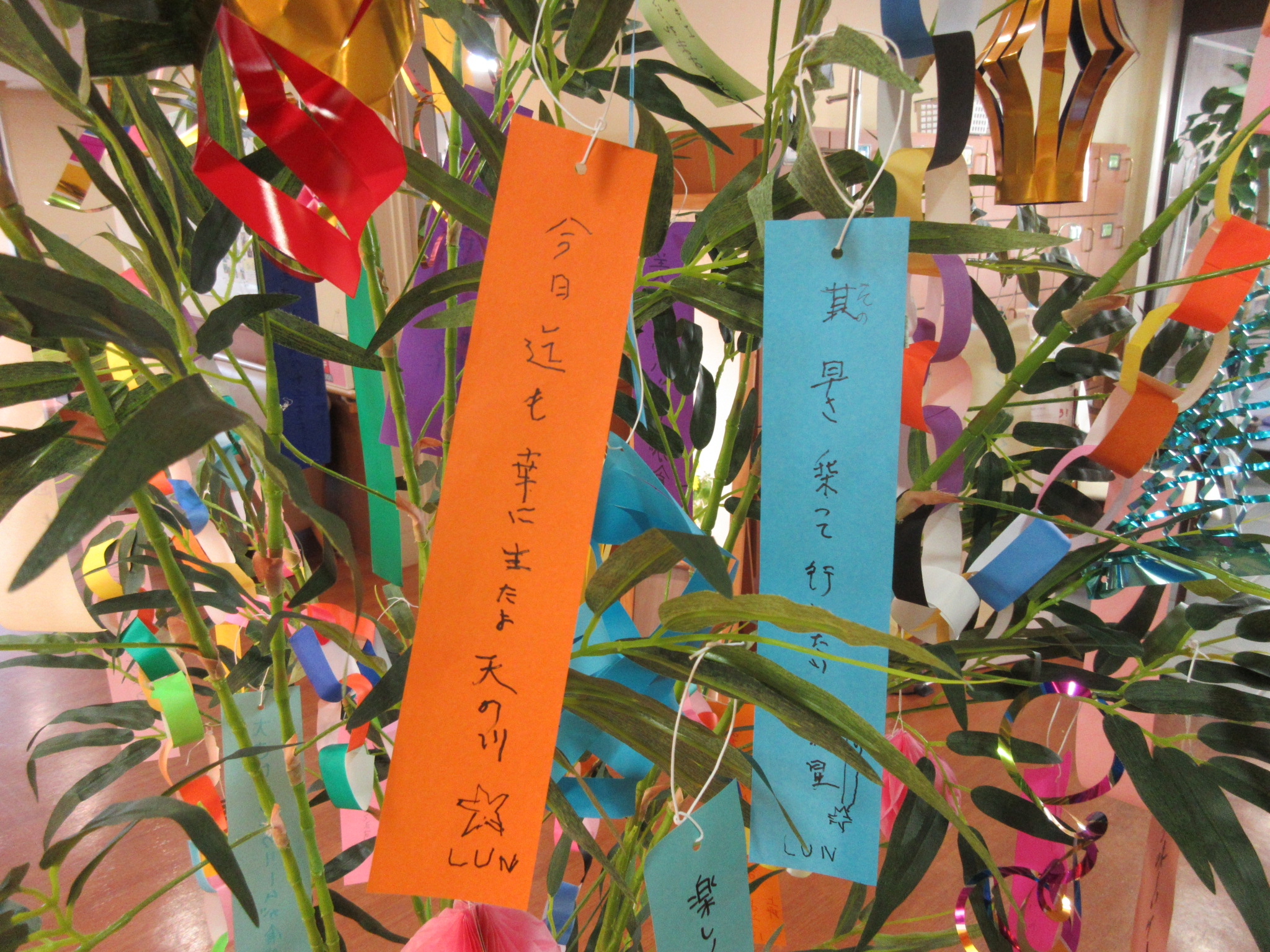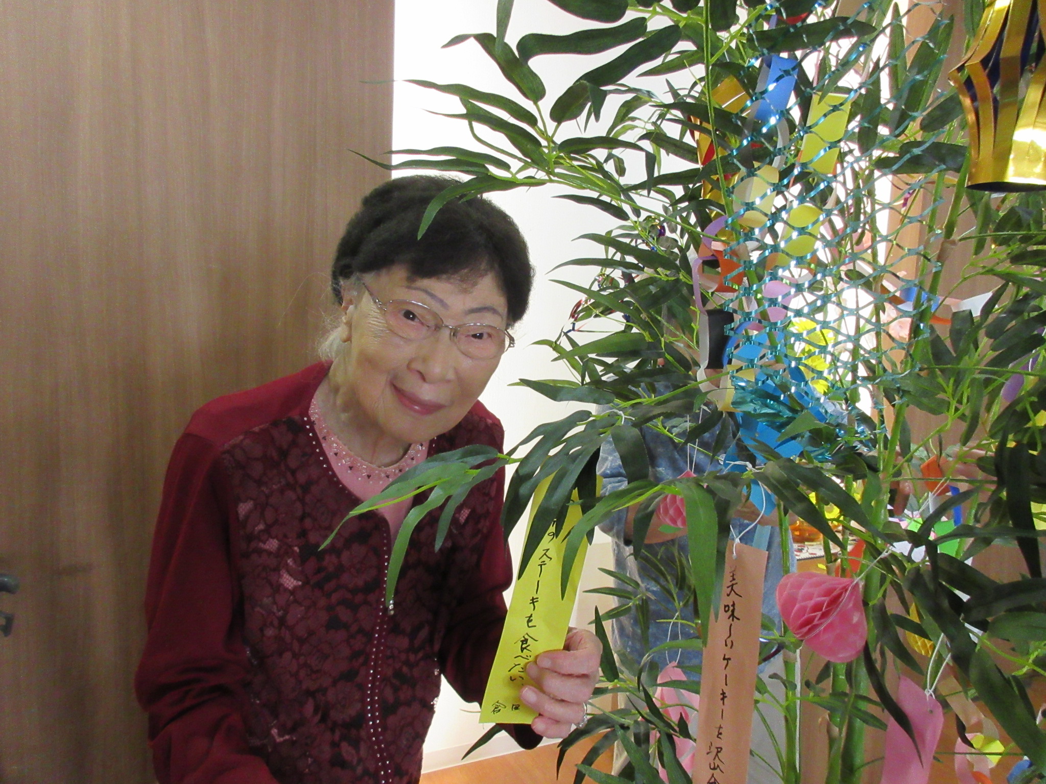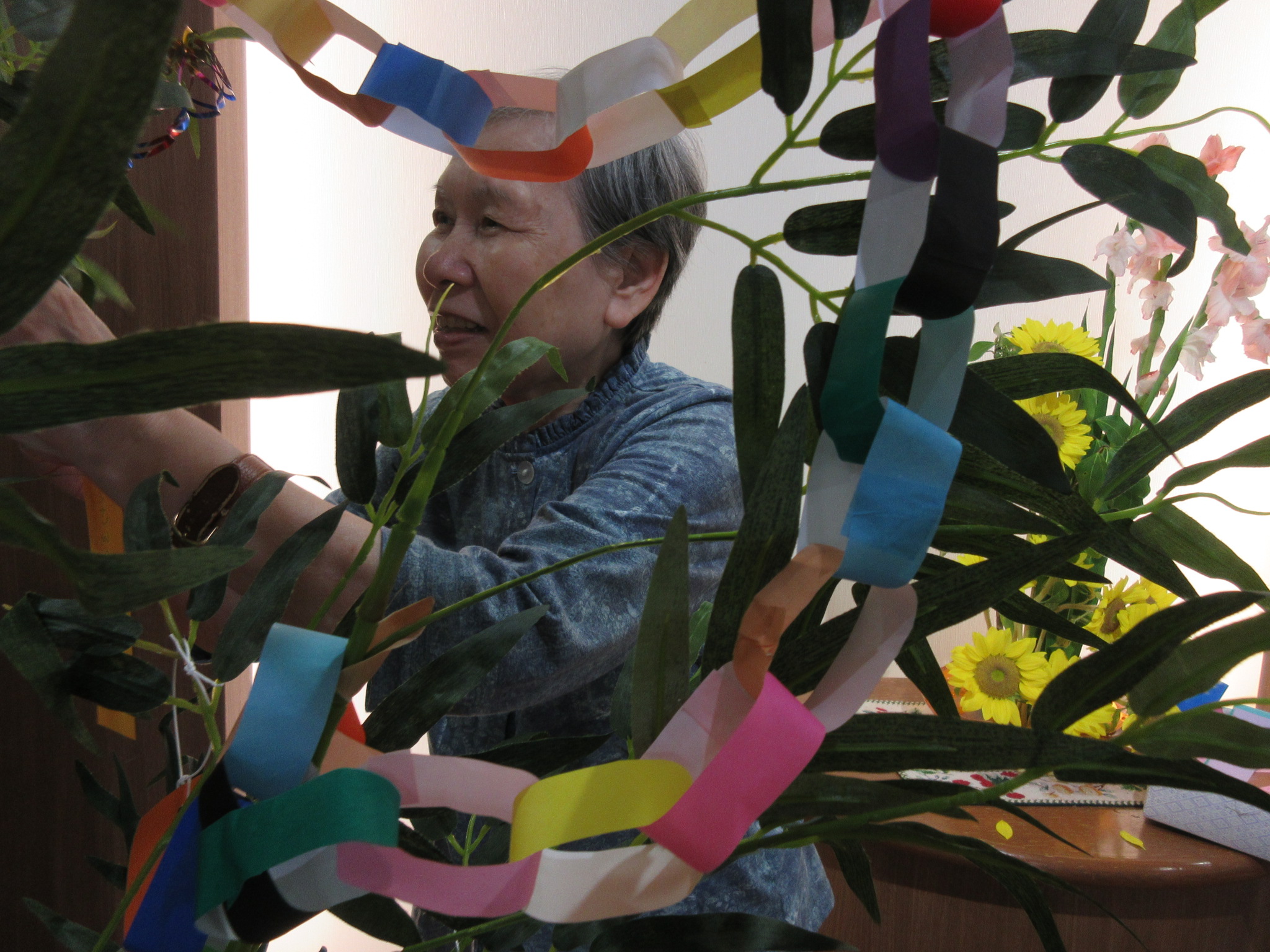 あとは入居者さんに願い事を書いた短冊をつけてもらいます