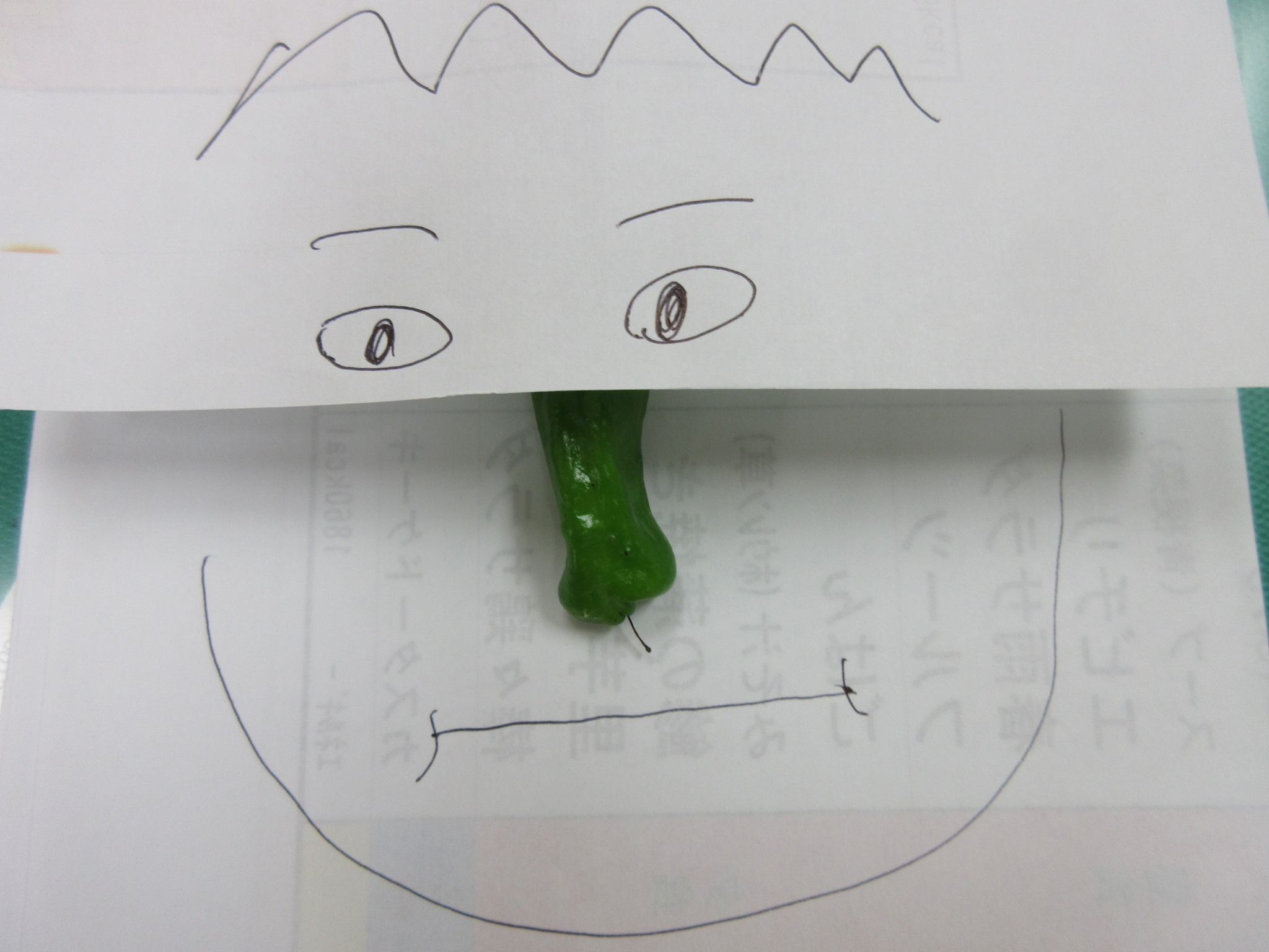 そして、お尻に1本だけヒゲの生えたししとうがあったのでオモシロ写真を撮ってみました(くだらなくてスミマセン)