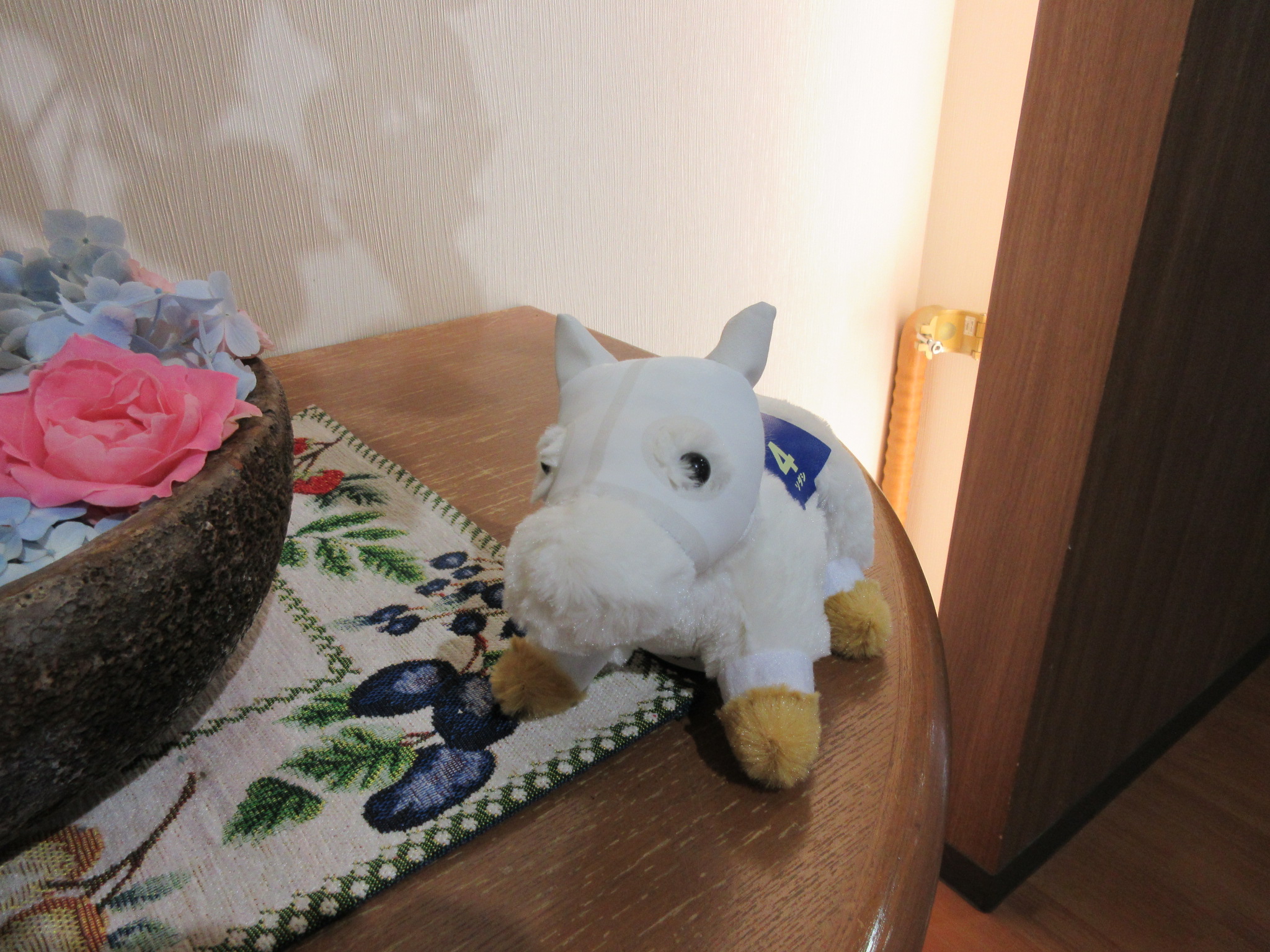 先日ソダシのぬいぐるみをお土産にいただきました。