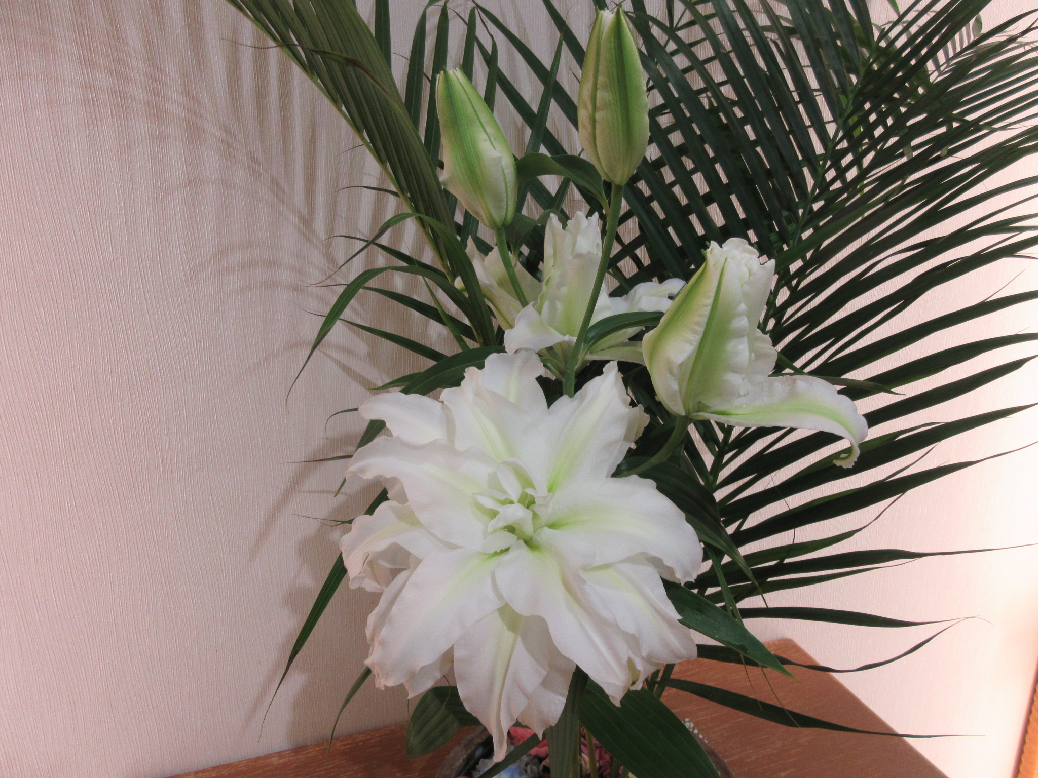 1F居室ベランダ沿いにお花を植えているのですが、立派なユリが咲きました