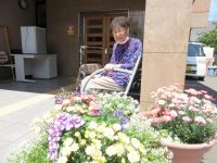 明日は雨らしいので気分が滅入ります(>_<)今日は午後から晴れたので入居者様とお花で1枚!(^^)!