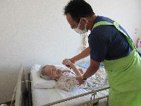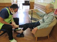 適度な運動が必要な方にはマンツーマンで散歩、ずっとベッドにいる方には関節拘縮を防ぐ為の運動、足がむくんでいる方には丁寧にマッサージを行います。