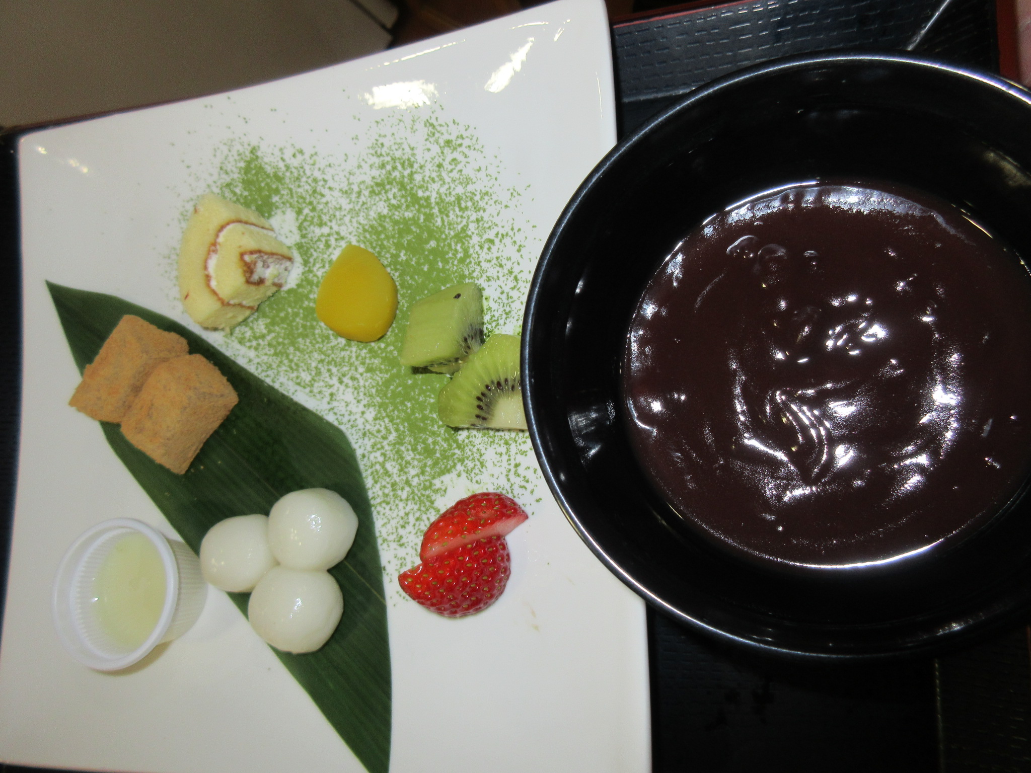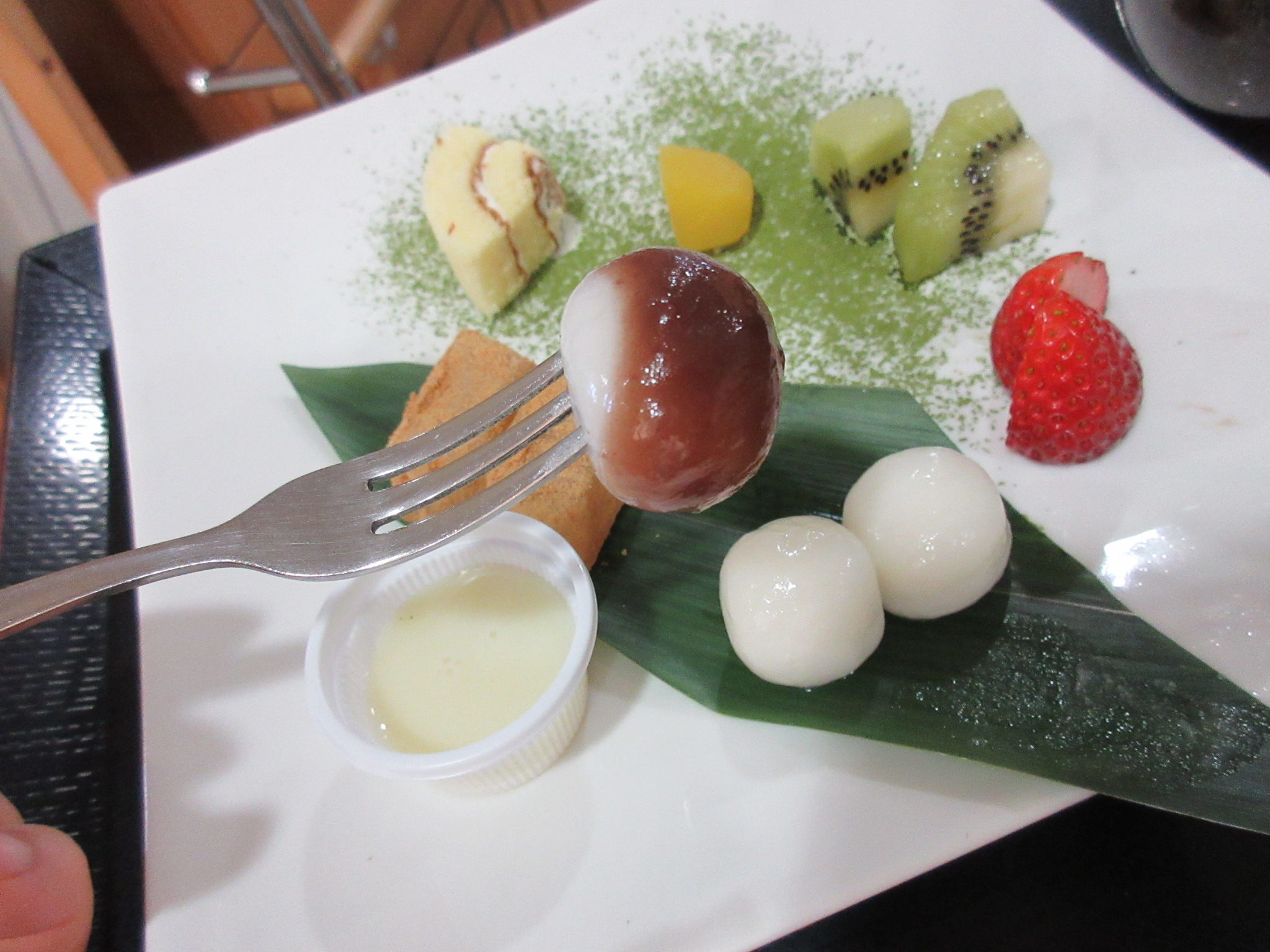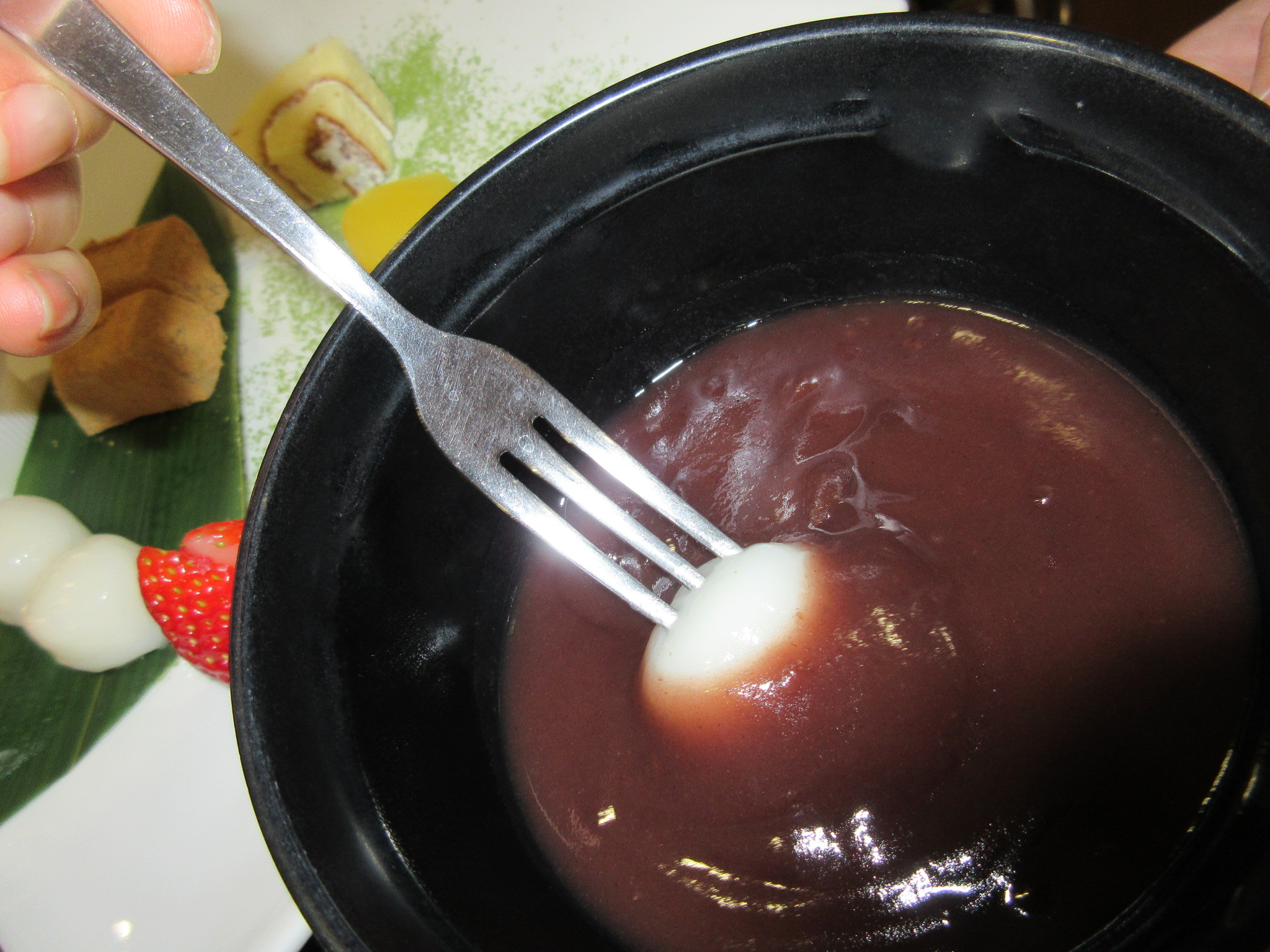 私たちも少し頂きましたが、果物の酸味とおしるこの甘さが絶妙!