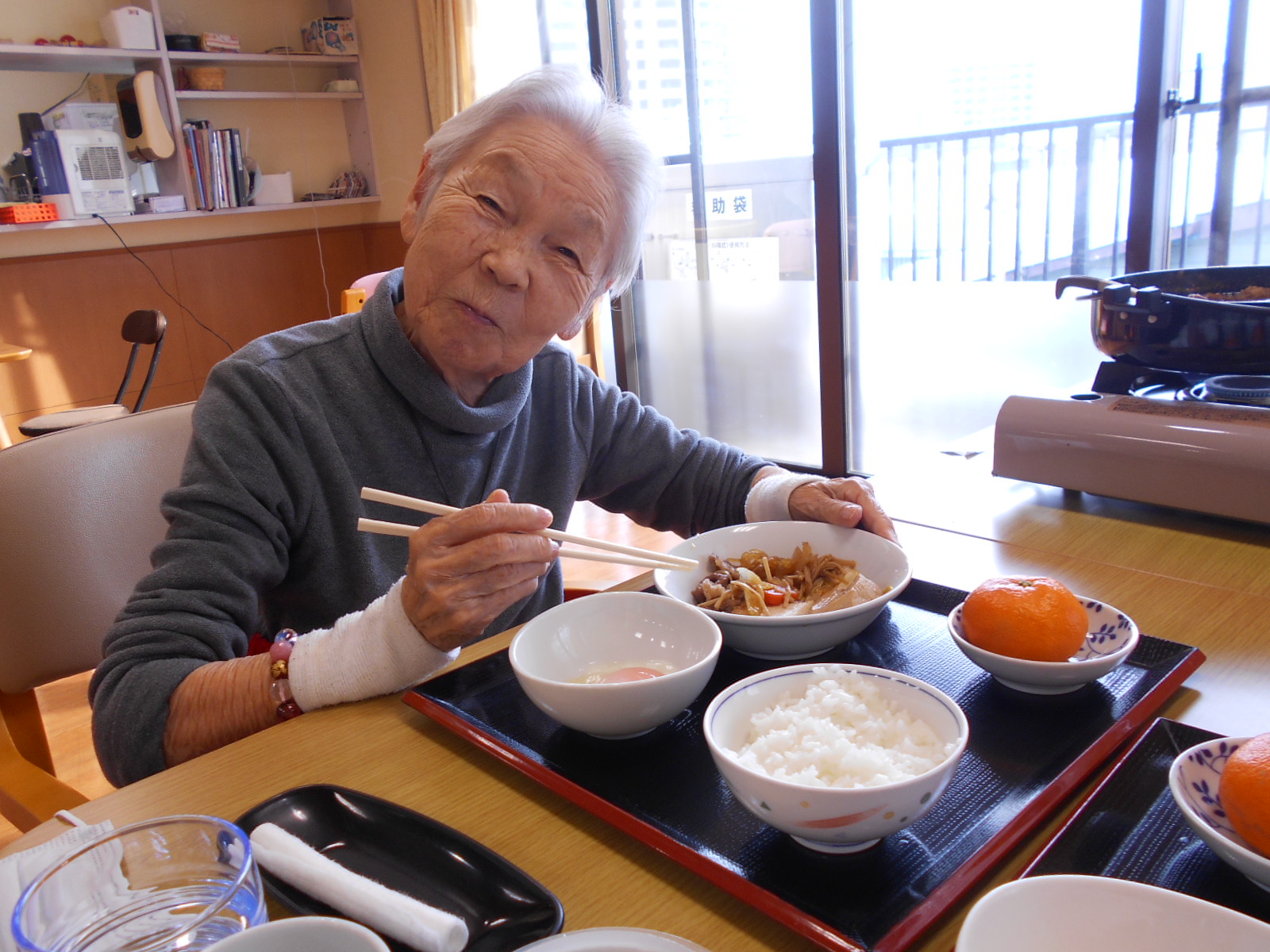 今日は事務所に遊びにいらした入居者様と、