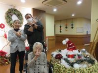 ご入居者様も事務所へ気軽に顔を出してくれたのでクリスマスの飾りの前でパシャリ!