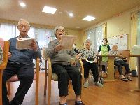 最後は、みなさんで赤とんぼ、ふるさと、さんぽを歌い敬老会は無事に終わりました。