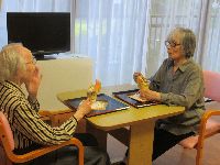日中は体操したり、入浴があったり、事務所にお話しに来てくれたり