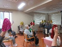 始めはラジオ体操から(笑)。体操の途中で歌を唄い、憧れのハワイ航路や箱根八里の曲に合わせ音楽体操を行ったり