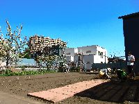 しています!今日は車いすの方も菜園の中に入れるように石畳を敷きました。