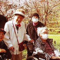 久しぶりの外出で みなさんの顔は桜を見る前から笑顔でいっぱいです。