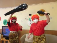 今年は少しでも鬼の雰囲気を出せるようにケアマネージャが口元をフエルトで作成してくれました。