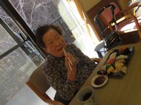 カメラを向けると ポーズをとって頂ける入居者さまとの