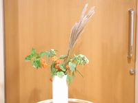 3階の大きな窓ぎわにススキとほおずきを飾ってみましたよ。