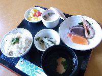 お昼から豪華で刺身に茶わん蒸しに鯛めし!!