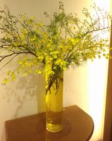 黄色い蝶がひらひらと群れているように花を咲かせています。