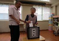 投票用紙に向かっていらっしゃいました。