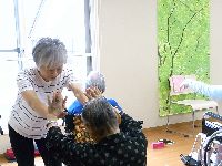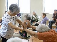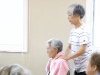 最後はみなさんの肩にふれてやさしくマッサージ。