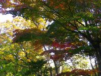 27基の鳥居がカラフルに色づき始めた紅葉にはえて