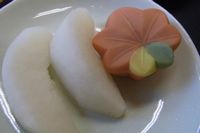 メインです。 デザートの梨と、もみじの形のねりきりも