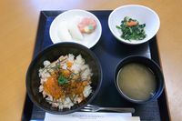 今日のお昼は『秋御膳』。鮭とイクラのはらこ飯が