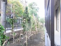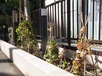 シャクナゲもブルーベリーの小さな木も、丁寧に冬囲いを