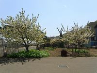敷地内にあるさくらんぼの花が満開をむかえています。