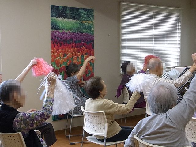 歌に合わせてポンポン体操