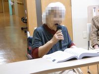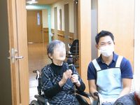 午後のひと時、歌好きの入居者様を集めてカラオケで歌いました。