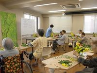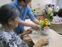 お花屋さんがまた何やら作成中・・・『何ができるの??』と興味津々入居者様。