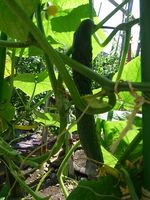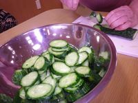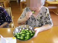 食べごろのキュウリを収穫し、入居者様に浅漬けを作って