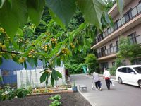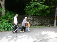 車椅子でお過ごしの入居者の方も外で歩行訓練。
